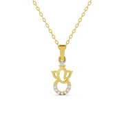 A contemporary yellow gold pendant featuring a minimalist Ganesha silhouette, elegantly accented with a single diamond at the crown and a shimmering pavé-set crescent base.