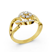 A mesmerizing yellow shade cocktail ring featuring a central diamond cluster held within a graceful, infinity-inspired bypass setting adorned with delicate pavé accents.