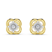 Modern square-shaped gold earrings featuring a brilliant sparkling diamond center.