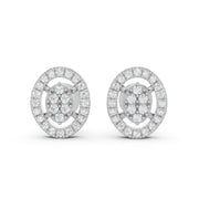 Elegant oval diamond stud earrings with a regal halo design.