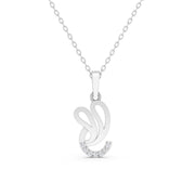 A modern silver-toned swirl pendant featuring a graceful, looping silhouette accented with a delicate crescent of shimmering diamonds.