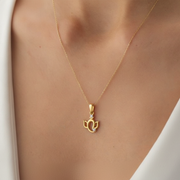 This gilded gold heirloom features a graceful Ganesh motif accented by two brilliant diamonds. One diamond graces his crown, while the other sits as a sacred "laddu" on his trunk.