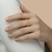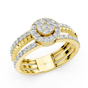A celestial masterpiece of light and gravity, the Golden Orbit Diamond Ring features a brilliant central stone suspended within a dual-banded halo.