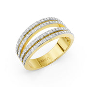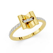 Featuring a unique, wave-inspired gold focal point and a sparkling pavé-set band, this ring perfectly balances bold architectural volume with delicate, light-catching detail.