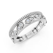 A unique ring with marquise-shaped settings that are filled with brilliant pavé diamonds, offering subtle, continuous sparkle that perfectly contrasts the beaded texture of the top band.
