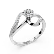 The Ayra Twin-Cluster Ring is a contemporary masterpiece featuring a polished bypass band that gracefully holds two radiant diamond floral clusters.