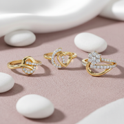 A graceful rose gold bypass ring featuring a stylized, swirling heart silhouette. This piece combines fluid, high-polish gold curves with a shimmering pavé diamond trail, creating a contemporary symbol of eternal connection.