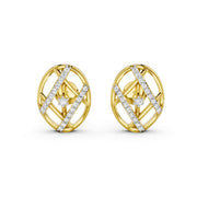 Modern square-shaped gold earrings featuring a brilliant sparkling diamond center.