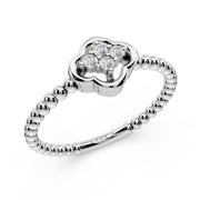 A refined clover-inspired diamond ring with a beaded band, crafted for timeless elegance and everyday charm.