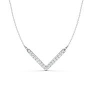 The bars of the V are meticulously set with a line of dazzling pave-set diamonds, creating a continuous, shimmering stripe of brilliance. It is an ideal gift for those who appreciate modern geometry and understated luxury.