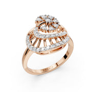 Elegant. Fluid. Timeless. Crafted in radiant rose gold, this ring features a graceful, wave-like silhouette pavé-set with shimmering diamonds.