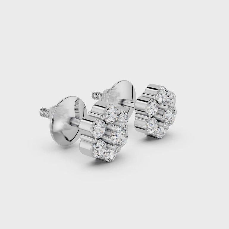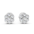 The Classic Diamond Cluster Stud Earrings feature a beautiful arrangement of round diamonds set closely together to create a stunning floral cluster look. Crafted in a sleek white metal finish, these earrings offer maximum shine and timeless elegance. Perfect for daily wear or special occasions.