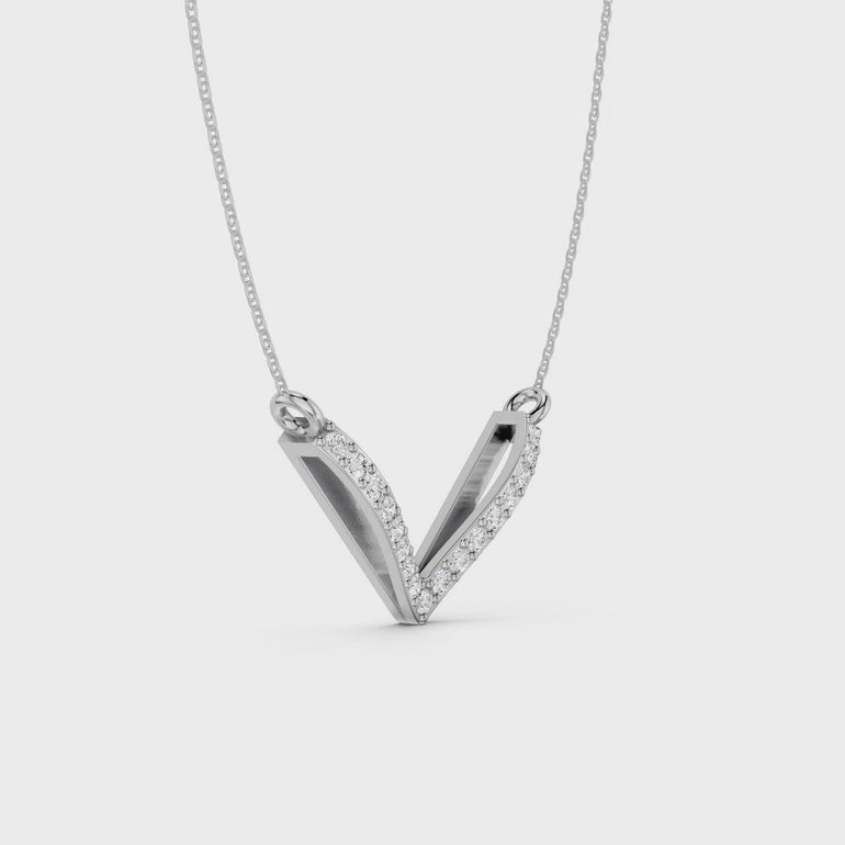 Embrace minimalist sophistication with the Pave Diamond Chevron Necklace. This contemporary piece features a delicate V-shaped pendant, also known as a chevron. The bars of the V are meticulously set with a line of dazzling pave-set diamonds, creating a continuous, shimmering stripe of brilliance. The clean, angular design makes it a versatile staple, perfect for layering with other necklaces or wearing on its own for a subtly impactful look. It is an ideal gift for those who appreciate modern geometry and understated luxury.