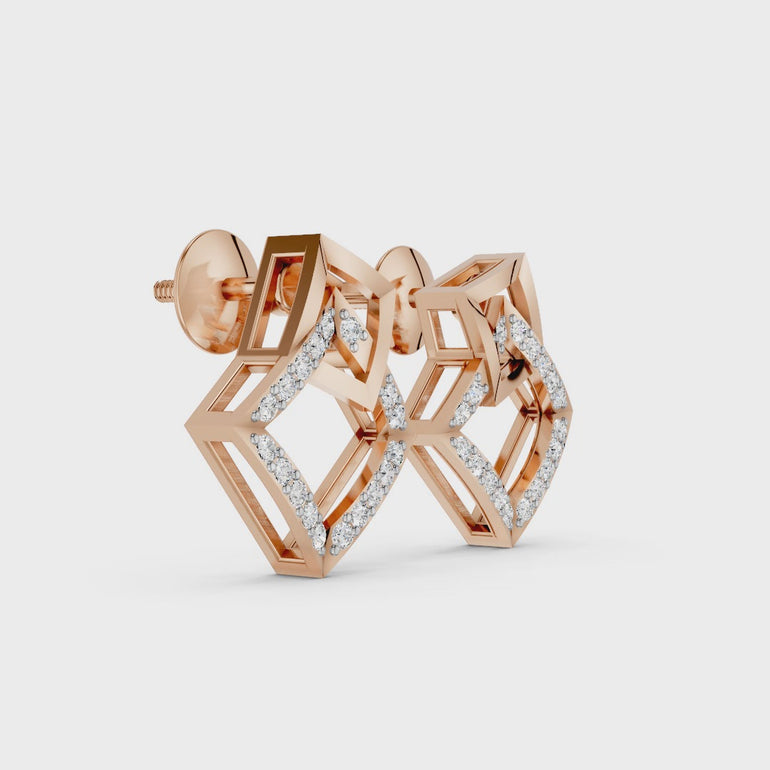 These architecturally inspired studs featuring brilliant-cut diamonds meticulously set along a graceful, open square frame. Their lightweight, secure design offers all-day comfort, making them the perfect practical piece to elevate your look, whether for a high-powered meeting or an elegant evening out.