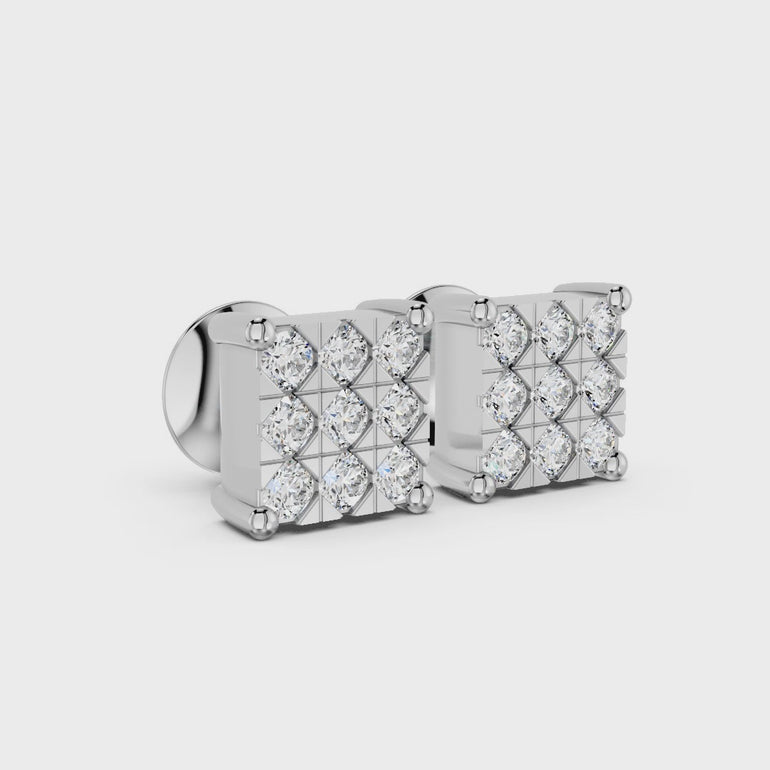 Elevate your daily look with the Royal Box Studs with understated luxury. The Sleek, Geometric shape is achieved through a Precision arrangement of Luminous stones, expertly set to form a vivid square. These studs are treasured essentials, offering a substantial yet discreet sparkle that transitions flawlessly from work to evening.