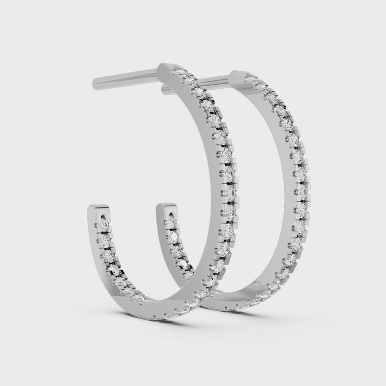 Drenched in a continuous row of hand-set diamonds, these sleek white gold C-hoops redefine classic luxury. Their slender profile and brilliant sparkle make them the ultimate "everyday-to-evening" essential for the modern woman.