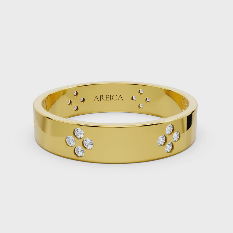 It's a beautiful, functional anchor—a daily reminder that your life is built upon a solid, lucky foundation .The small, striking quad-dot formations are strategically placed around the band, functioning as elegant markers of life's four greatest fortunes: Love, Joy, Strength, and Harmony .Its solid construction and smooth edges make it ideal for comfortable, everyday wear as a wedding or fashion band.
