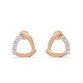 Embrace modern minimalism with these exquisite open-triangle stud earrings. Crafted in lustrous rose gold vermeil, the unique design features a fluid, twisted silhouette where one curve gleams with high-polish metal and the other sparkles with a row of precision-set diamonds. This harmonious contrast of texture and light makes them the perfect accessory for the contemporary woman. Whether you are dressing up for a special occasion or adding a touch of glamour to your office attire, these studs offer a sophisticated geometric flair that is timelessly elegant.