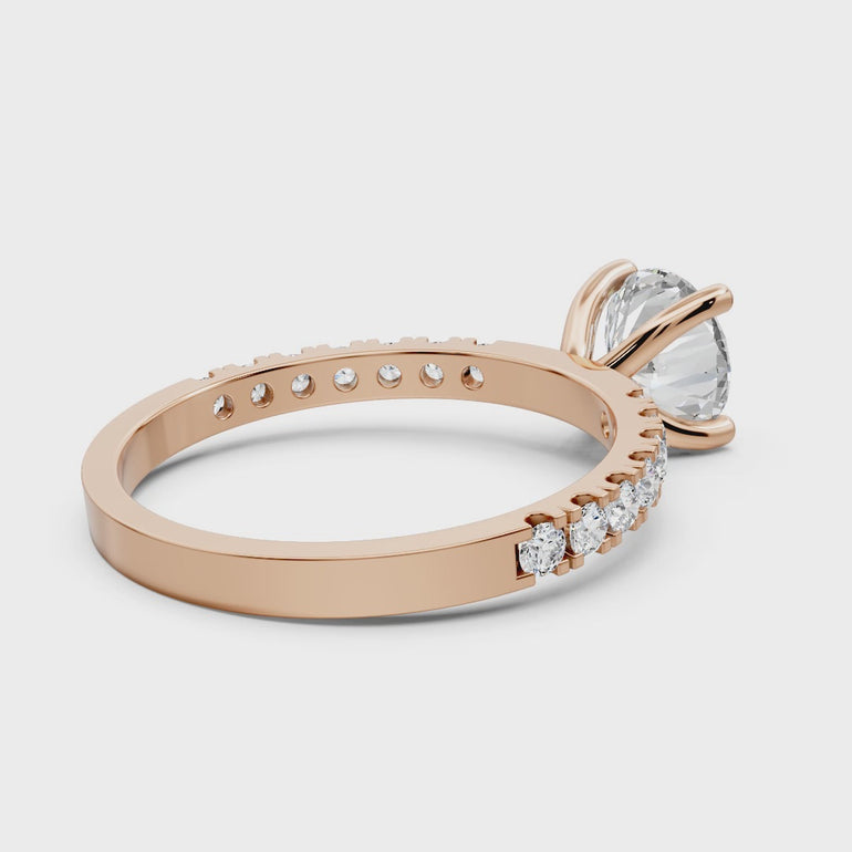 This exquisite engagement ring is designed for the bride who cherishes classic elegance with maximum sparkle. Unlike a plain solitaire, this ring features a pave setting along the shoulders. These smaller, precision-set diamonds act as a path of light, drawing the eye directly to the main stone while adding a delicate, glittering texture to the ring's profile. It captures the feeling of a quiet promise made under the sky, where the only thing more brilliant than the stars was the look in your partner's eyes. It represents the "yes" that changed the rhythm of your heart forever.