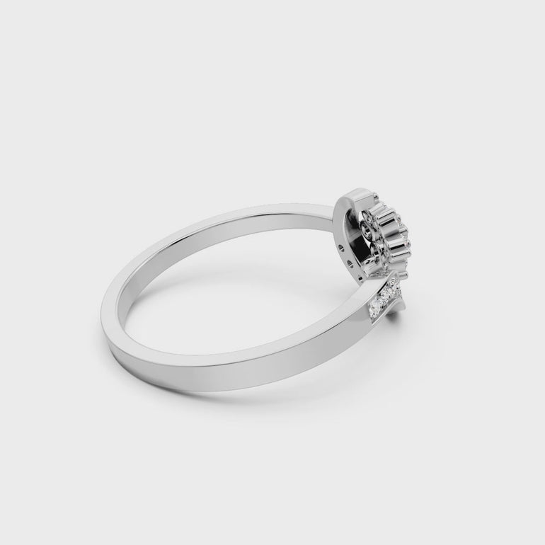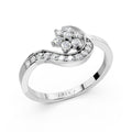 This contemporary bypass ring focuses on fluid lines and organic shapes. The polished band splits and curves into a sparkling "S" shape, lined with channel-set diamonds that guide the eye toward a central rosette. The floral cluster is composed of multiple round diamonds, creating a singular, high-impact sparkle. Its low-profile design makes it an ideal choice for sophisticated daily wear.