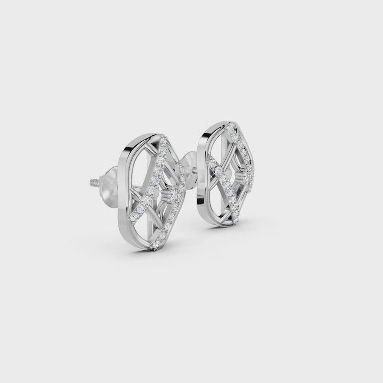 Capture the magic of a star-filled sky with the Stellar Net earrings. These sophisticated studs feature an intricate, open-work lattice design, reminiscent of a net cast across the heavens to capture falling stars. Each intersecting silver-tone line is meticulously hand-set with brilliant crystals, creating a multi-dimensional sparkle that dances with every movement. Encased in a polished oval border, these earrings offer a perfect blend of modern geometric structure and timeless celestial elegance, making them the ideal statement piece for those who want to carry a piece of the cosmos with them.