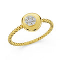The Golden Orbit Diamond Ring redefines the traditional solitaire by introducing a sense of cinematic motion. Inspired by the physics of the cosmos, the design features a "floating" diamond centered between two concentric golden bands. This unique structure allows light to enter the stone from 360 degrees, maximizing fire and brilliance while creating a silhouette that appears to defy gravity.