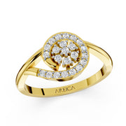 A refined gold ring featuring an elevated diamond cluster with delicate side-set sparkle, designed for effortless everyday luxury.