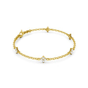 A minimalist and elegant bracelet featuring small, radiant diamond clusters shaped like flowers, spaced evenly along a fine link chain, perfect for everyday sparkle.
