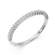 An essential piece featuring a continuous row of brilliant-cut diamonds across the top half of the band this slim ring is functionally perfect for stacking with an engagement ring or wearing as a simple, elegant wedding band.