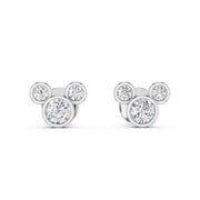 Adorable stud earrings featuring the iconic Mickey Mouse, formed by a central diamond and two smaller diamonds for the ears. Your perfect visit to childhood.