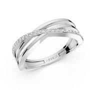 A sleek open-band ring adorned with shimmering diamonds, crafted for modern elegance and everyday wear.