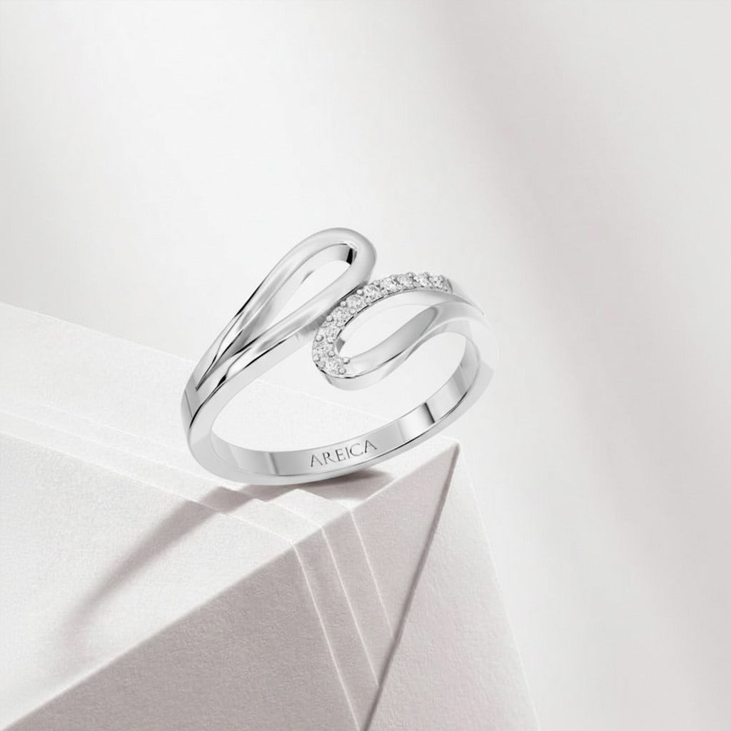 Featuring a delicate twin-wave motif—one high-polish and one sparkling pavé—it offers a graceful, modern silhouette that mimics the motion of the tide.